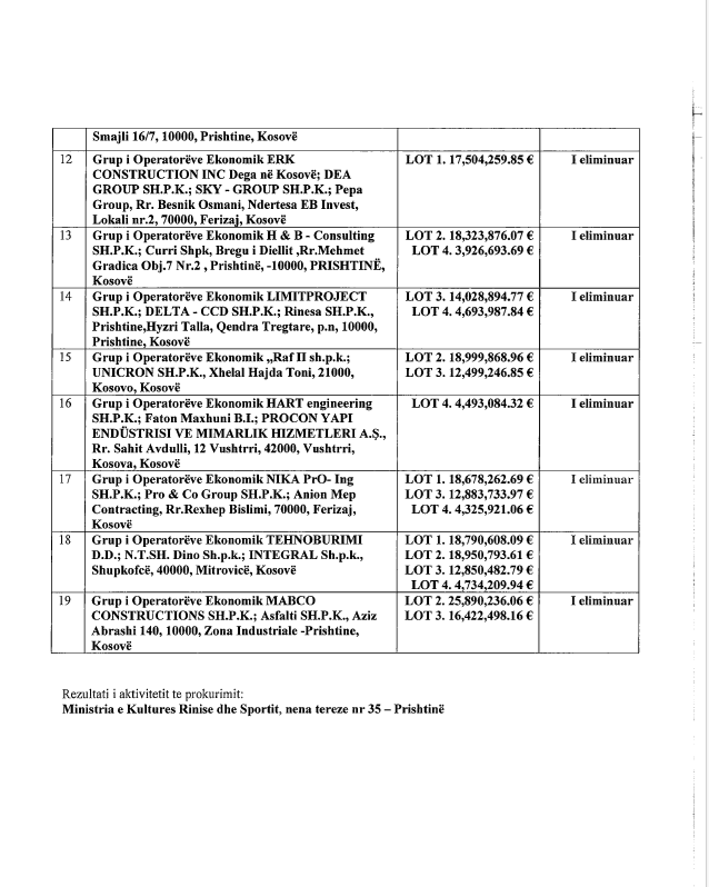Sipas dokumenteve të siguruara nga portali shihet se lotin më të madh në këtë kompani prej hiç më pakë se 17.3 milionë euro e ka fituar kompania BM Group nga Prishtina, lotin e trete të këtij tenderi dhjetra milionësh e ka fituar kompania R & Rukolli me 12 milionë euro si dhe lotin e trete e ka fituar kompania Alba Grup me 4.2 milionë euro.