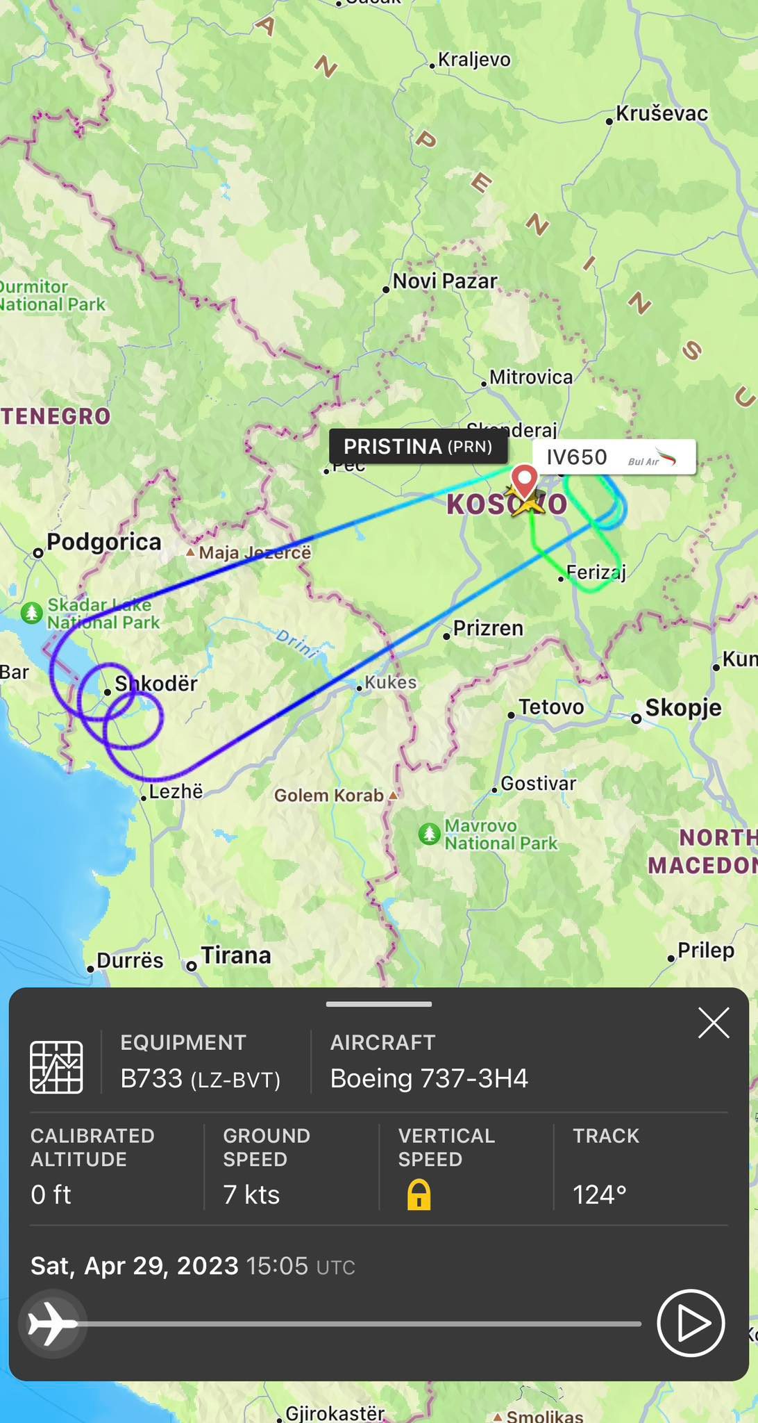 Siç shihet nga radarët online, aeroplani ka bërë disa lëvizje rrethore të çuditshme mbi Shkodër, dhe është kthyer sërish në Aeroportin e Prishtinës.