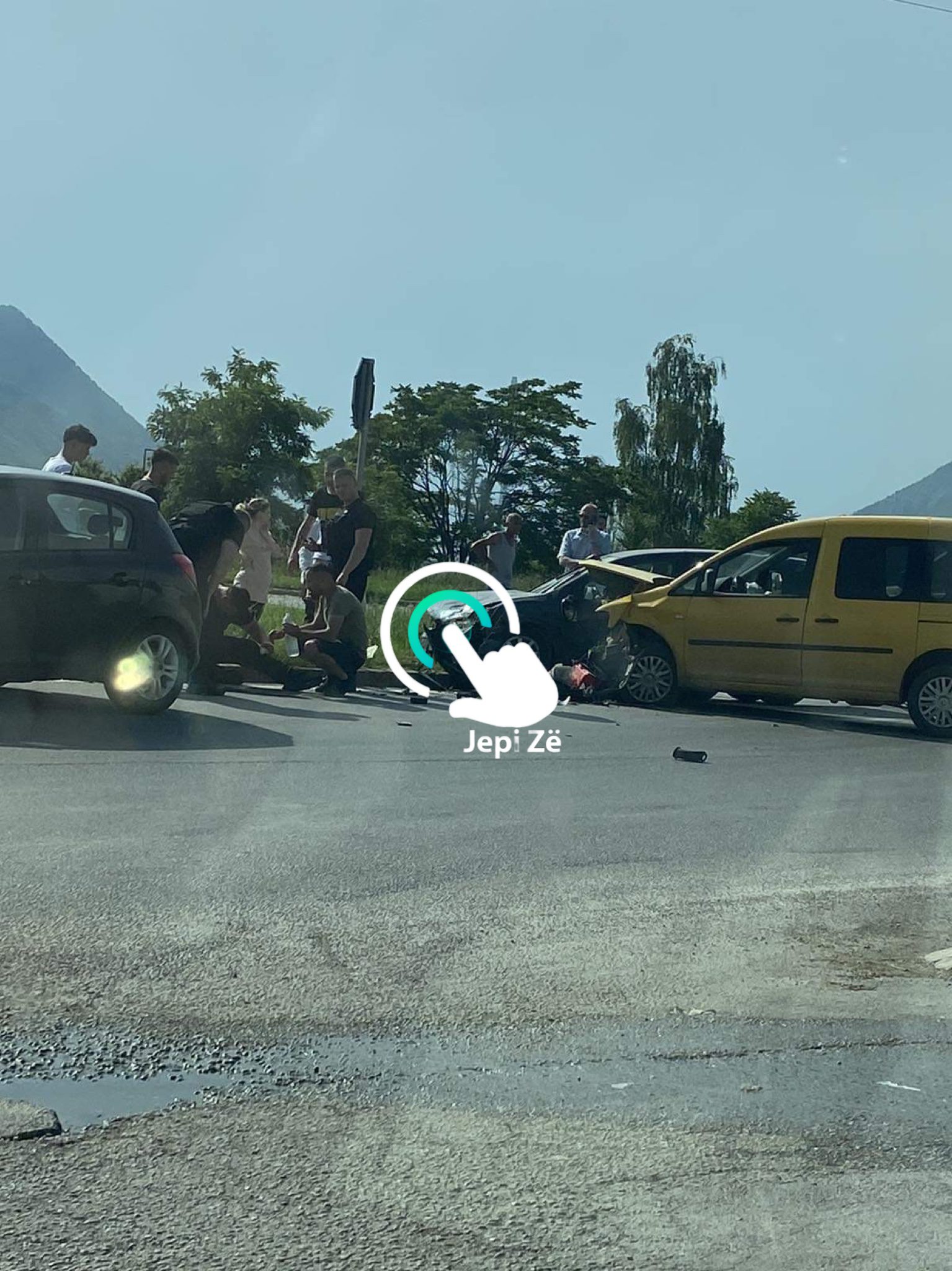 Nga aksidenti ka të lënduar, madje dikush shihet i shtrirë në tokë.