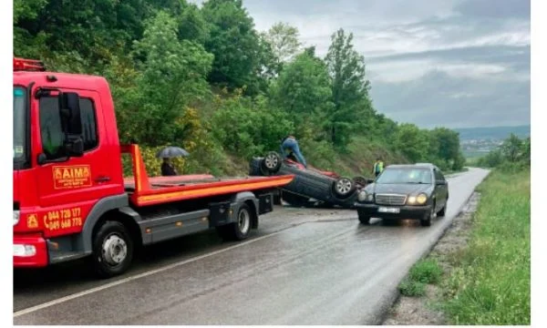 Aksident i rëndë në rrugën Skënderaj-Klinë, vetura përfundon me 4 rrota nga qielli