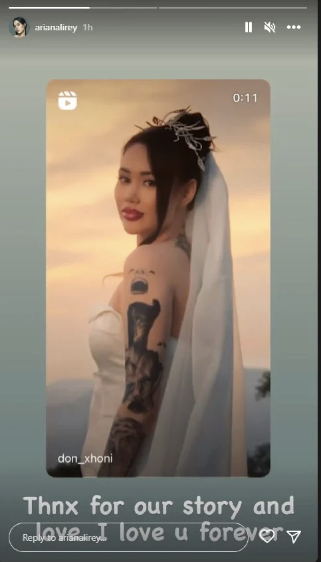 Të njëjtën video e ka shpërndarë edhe Ariana mbi të cilën ka shkruar: Faleminderit për tregimin tonë dhe dashurinë, të dua përgjithmonë.