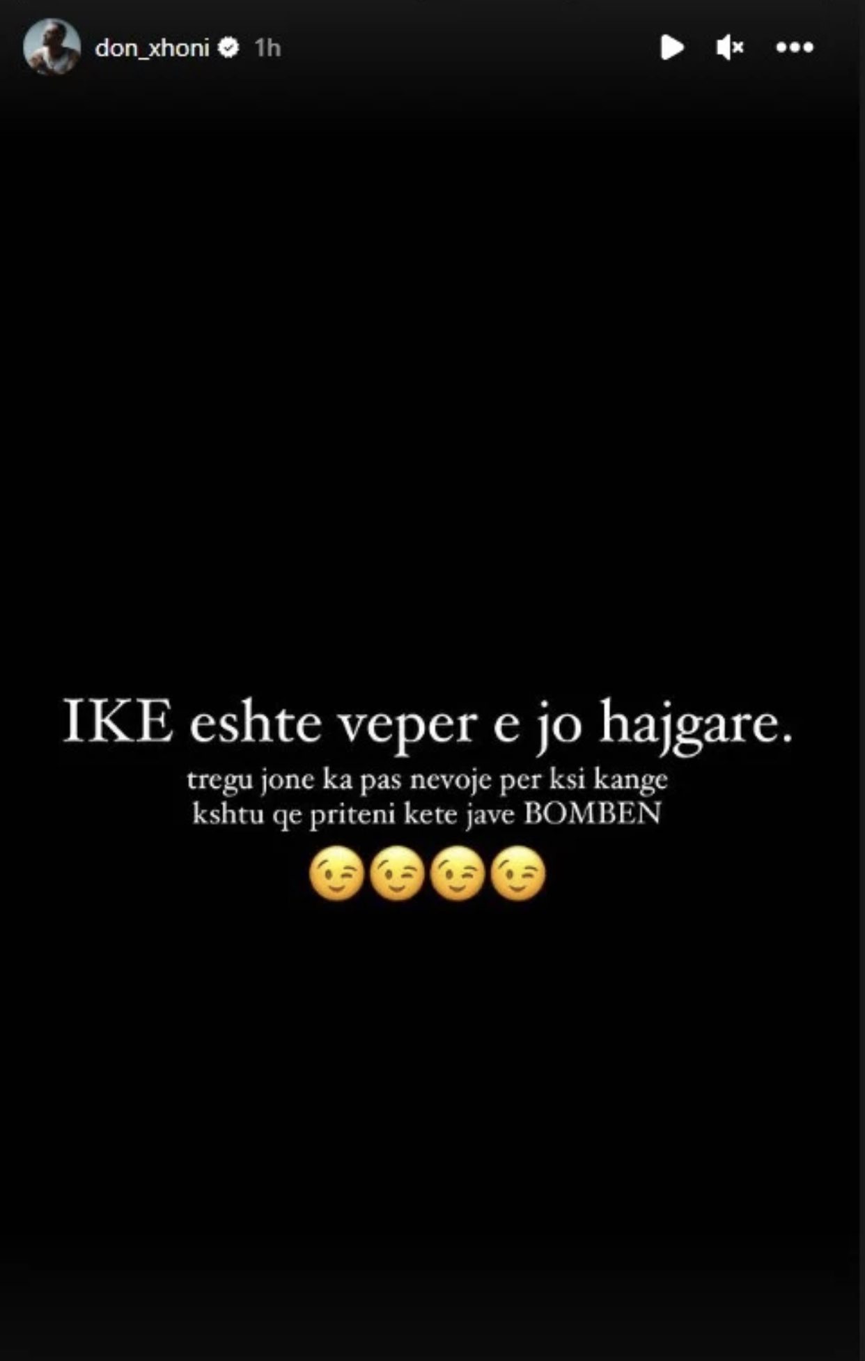 Në një storie tjetër Don Xhoni ka shkruar: IKE është vepër e jo hajgare. Tregu i jonë ka pas nevojë për ksi kënge, kështu që priteni këtë javë bombën.