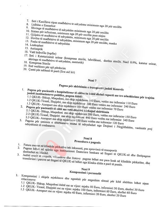 Në rregullore të SHSKUK-së thuhet se transporti nga QKUK-ja deri në Aeroport, së bashku me ekipin mjekësor ka një çmim prej 100 euro. Ndërsa vetëm me infermierë çmimi është 70 euro.