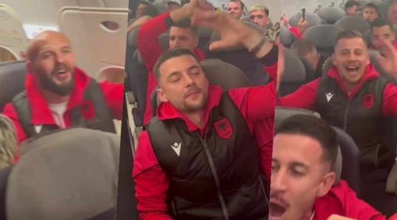 “Bac u kry”, futbollistët e Shqipërisë i këndojnë Adem Jasharit në aeroplan pas fitores në Leskovc