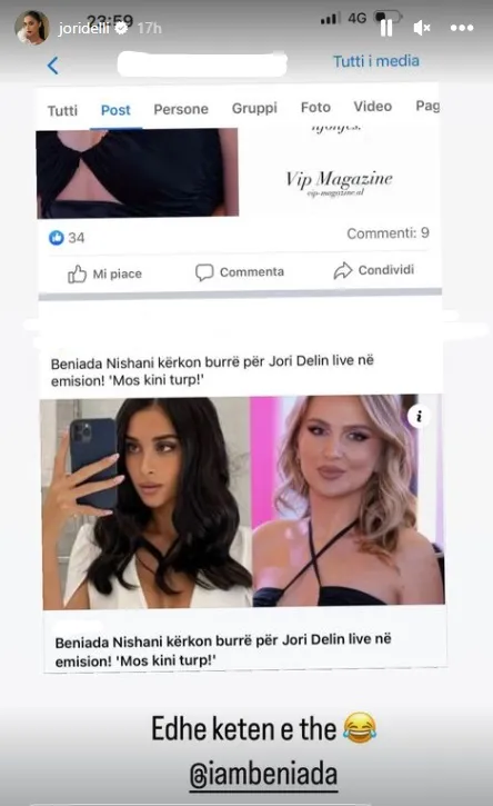Kjo e fundit e ka postuar lajmin në InstaStory duke i reaguar me të qeshur: Edhe këtë e the.