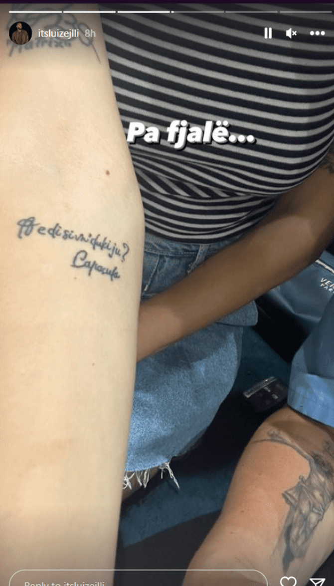Këtë “dedikim” nga fansja, e ka bërë vetë të ditur Luizi në një postim të fundit në InstaStory sipër të cilës ka shkruar “pa fjalë”. Kujtojmë që edhe më parë Luizi tha se ka takuar një tjetër fans që ka bërë tatuazh portretin e tij.