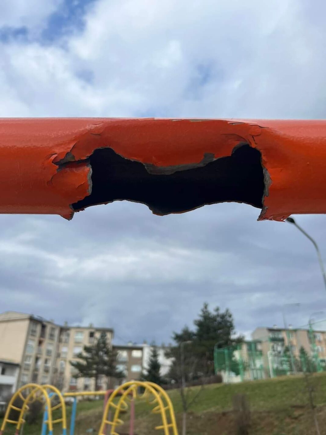 Këndi i lojërave për fëmijët me aftësi të kufizuara në lagjen “Ulpiana” në Prishtinë, ditën e sotme është gjetur i dëmtuar.