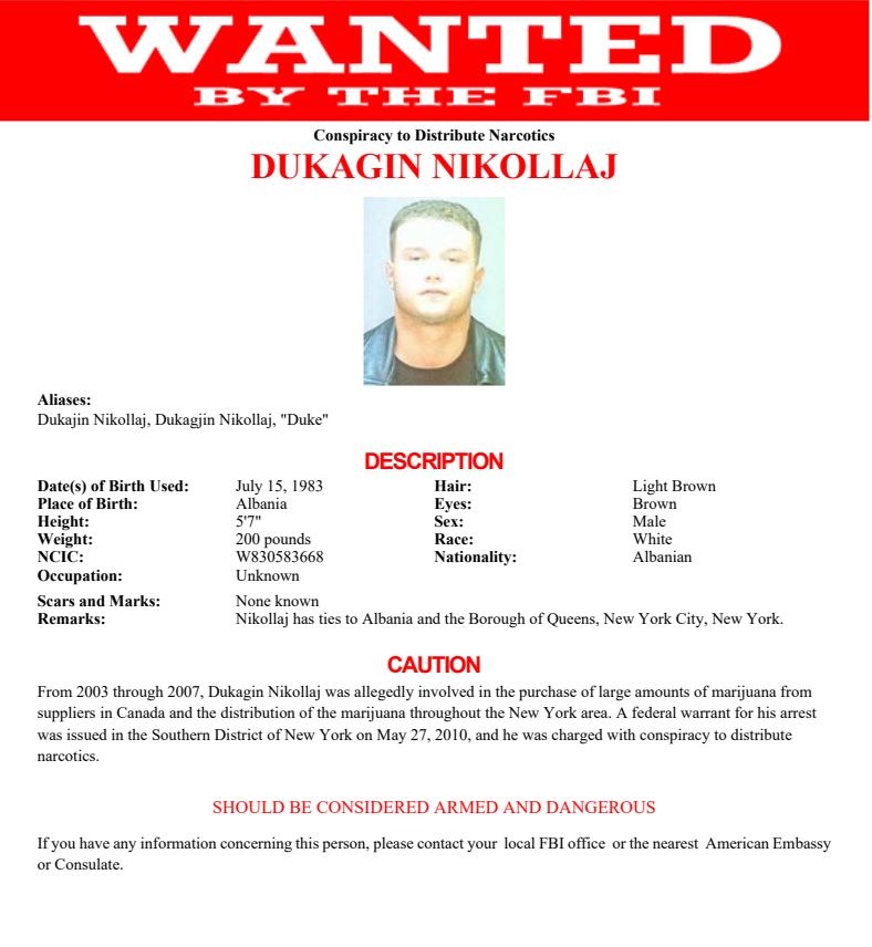 Për “Dukën” është lëshuar urdhër arrest në maj të vitit 2010 nën akuzat për shpërndarje të lëndëve narkotike.