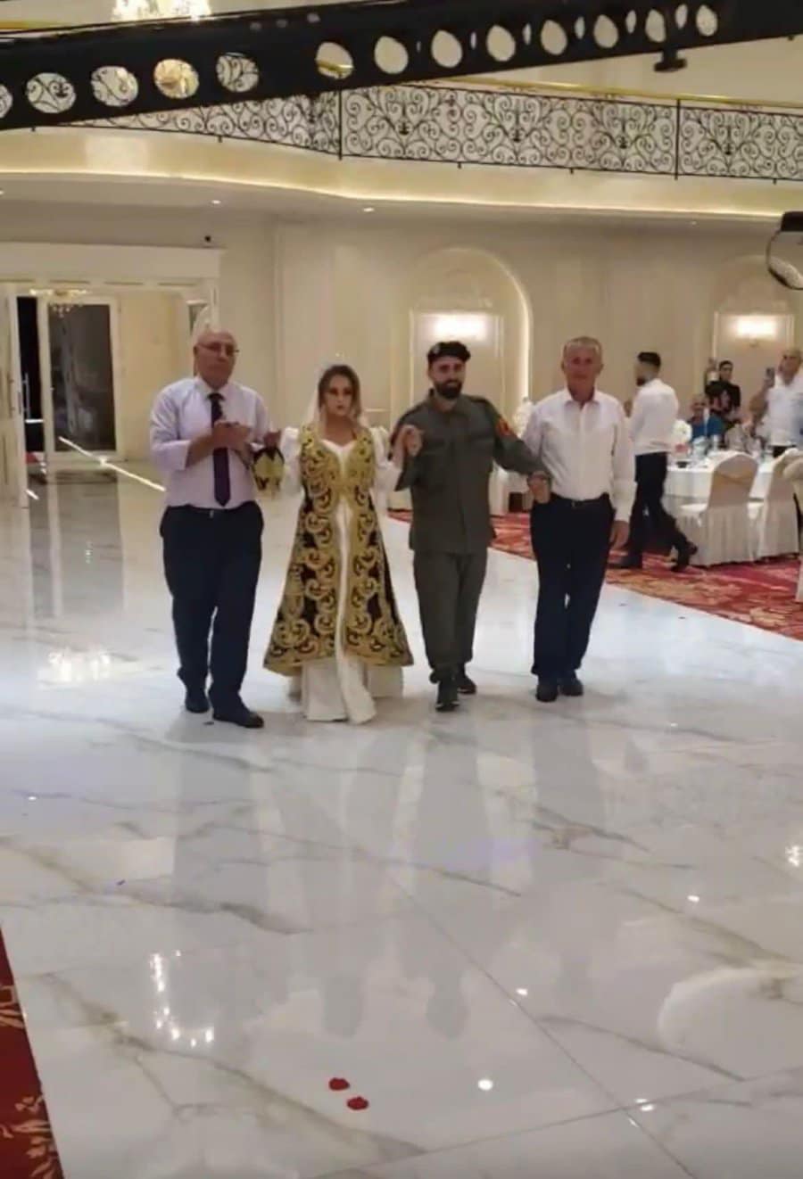 Ai në një moment gjatë dasmës u shfaq i veshur me uniformën e babait të tij, teksa gruaja e tij kishte veshur veshje tradicionale.