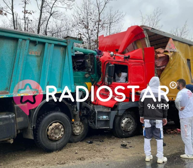 Dy kamion janë ndeshur me njëri-tjetrin, ndërsa dëmet që shihen në foto duket të jenë të mëdha.