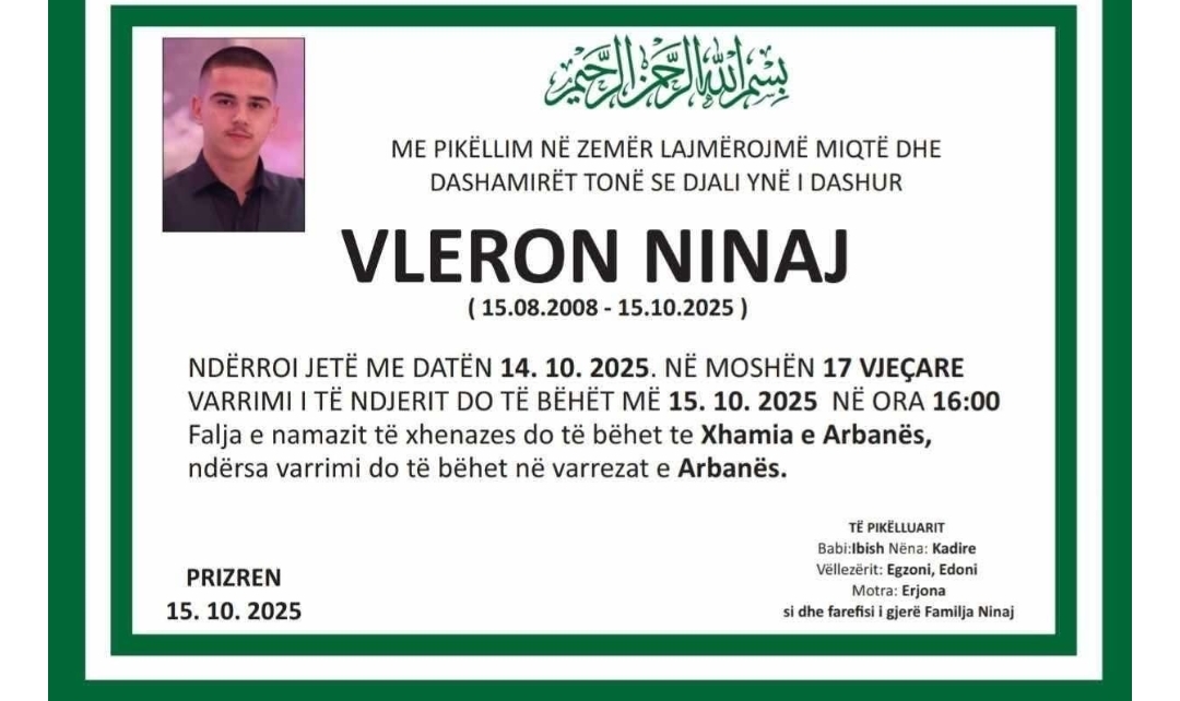 E dhimbshme: Sot i jepet lamtumira e fundit 17-vjeçari që humbi jetën tragjikisht ditën e djeshme