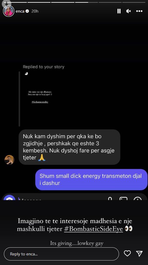 Tutje, Enca publikoi gjithashtu mesazhet e tjera ofenduese që kishte marrë nga ndjekësit, lidhur me të dashurin e saj të ri.