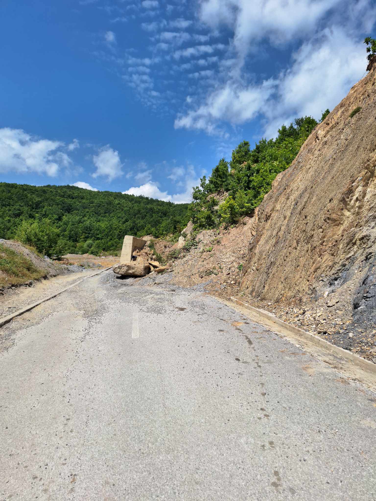 Në pamjet që janë publikuar, shihet rrëshqitjet e dheut që kanë zërë pjesën më të madhe të rrugës.