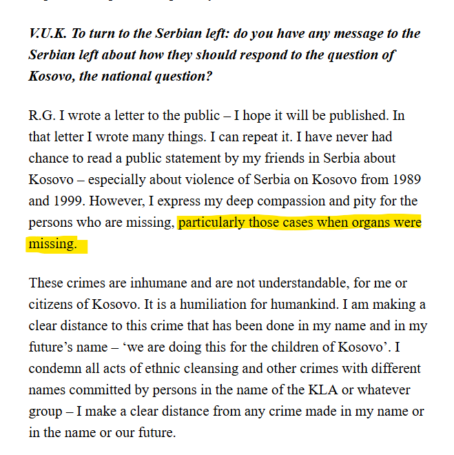 “Shpreh ndjeshmërinë dhe dhimbjen time të thellë për personat e pagjetur, në veçanti për ato rastet kur u janë marrë organet”, përgjigjet Rron Gjinovci.
