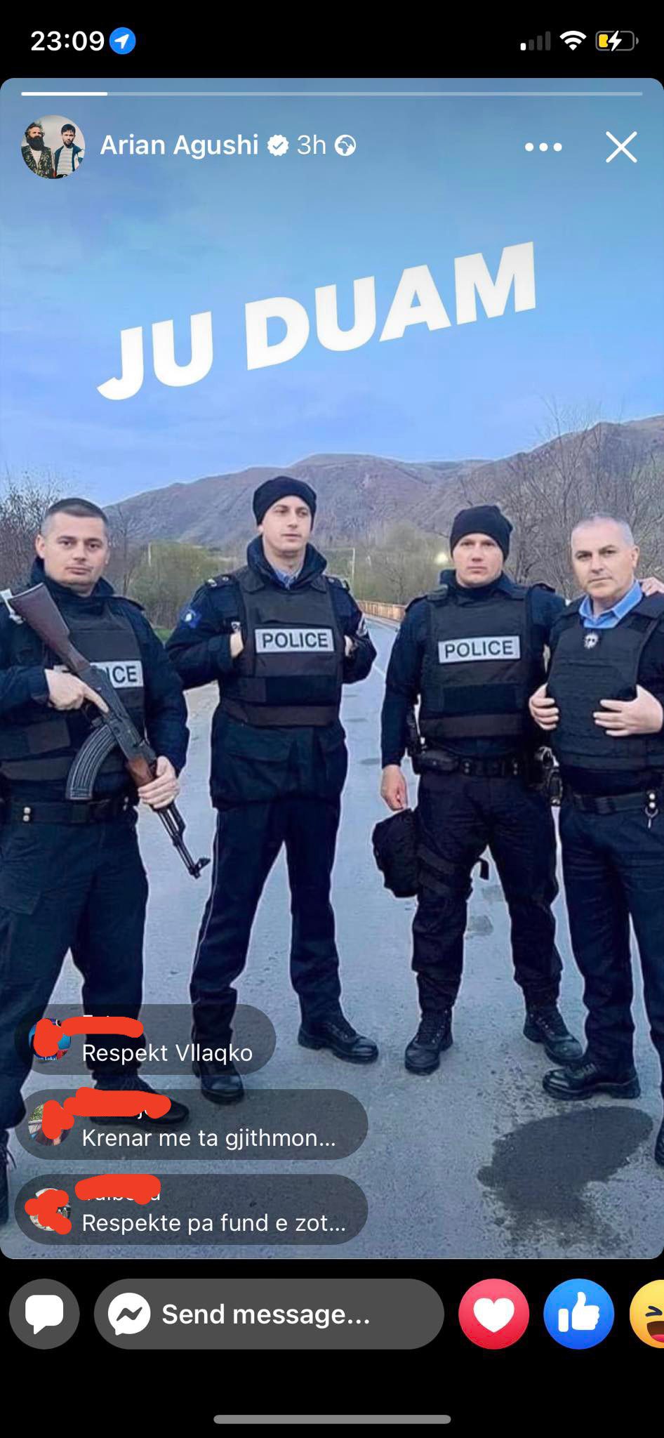 Për t’i mbështetur këta katër policë, që u suspenduan për një akt që vetë ata nuk e kishin në dorë, Gold AG vendosi ta ripostojë të njëjtën fotografi, në rrjetet e tij sociale.
