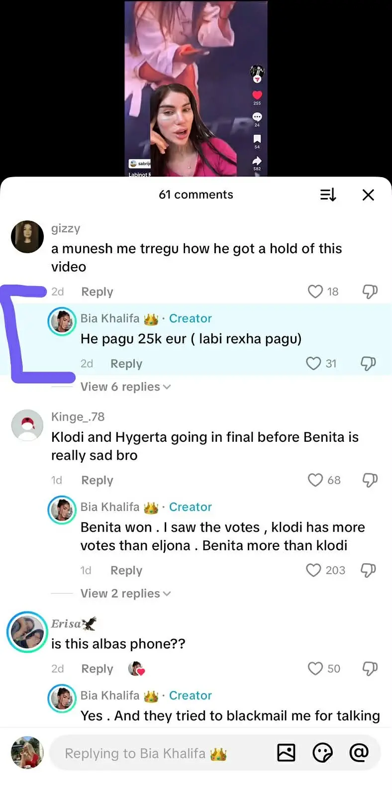Vet Bia përmes një video në Tik-Tok ka thënë se Labi ka paguar 25 mijë euro për ta siguruar këtë video.