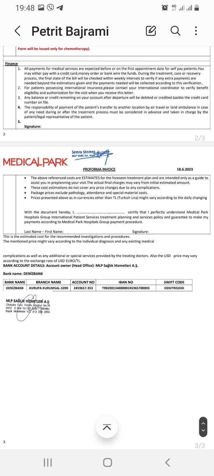 Shërimi i Petritit nuk mund të bëhet në Kosovë, si opsion është shteti i Turqisë në spitalin MEDICALPARK në Stamboll. Në bazë të profakturës kostoja e shërimit të Petritit sillet mbi 100,000.0 Euro.