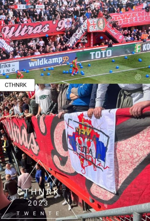 Në flamurin e shfaqur në tribuna nga tifozët e Twentes, shihet harta e Kosovës dhe brenda saj flamuri i Serbisë, ndërsa shkruhej “Kosova është Serbi”.