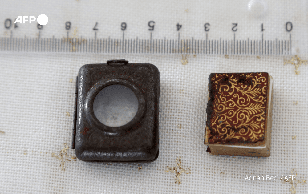 Është vetëm 2 centimetra i gjerë dhe 1 centimetër i hollë, ashtu që libri thuajse zhduket në pëllëmbën e dorës dhe mund të lexohet vetëm me një xham zmadhues.