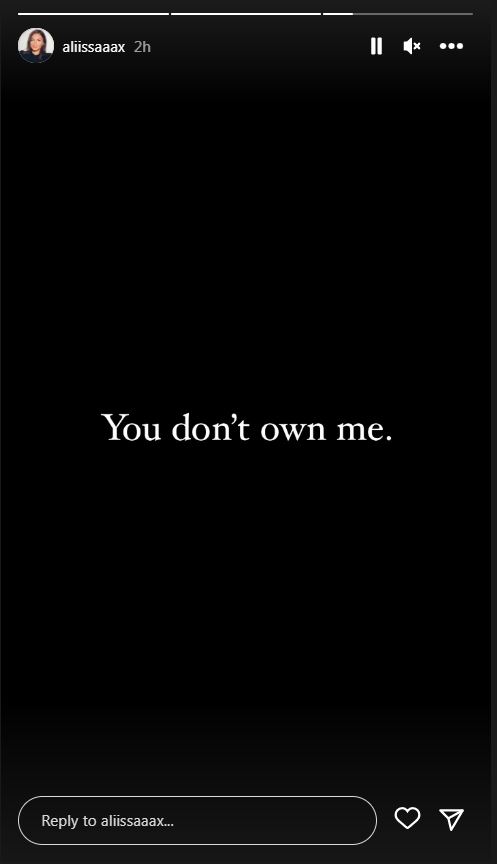 “Ti nuk më zotëron”, është shprehur ajo, pa specifikuar se kujt i drejtohet.
