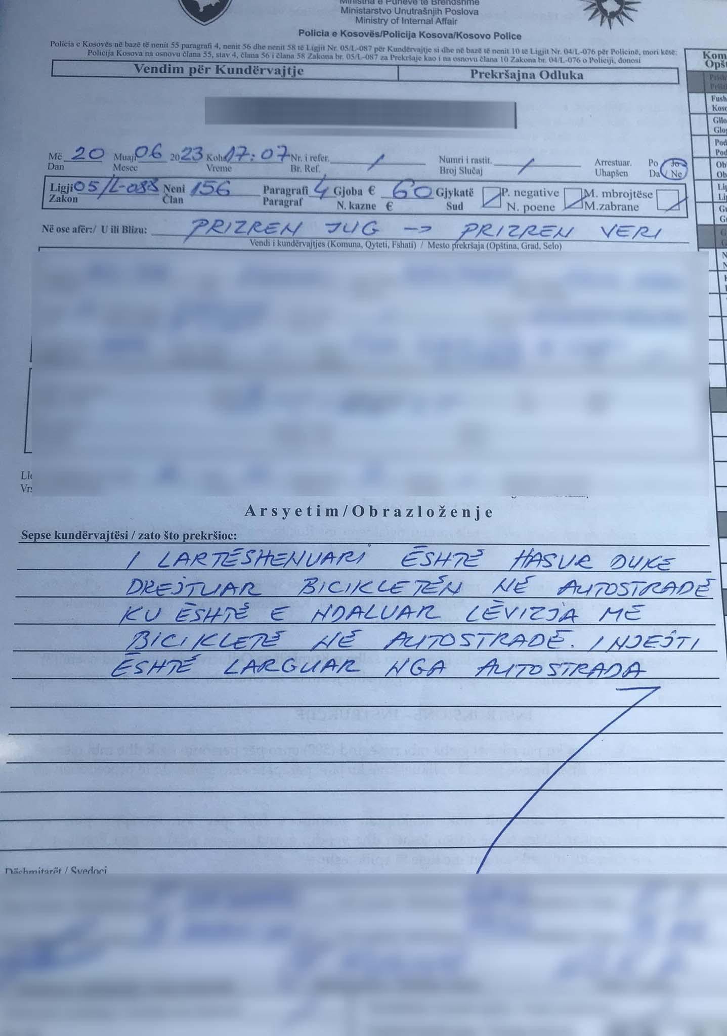 Njësia për Kontroll të Autostradave gjatë patrullimit në autostradën “Ibrahim Rugova” nga Prizren Veri në Prizren Jug ka hasur një person duke drejtuar biçikletën në autostradë.
