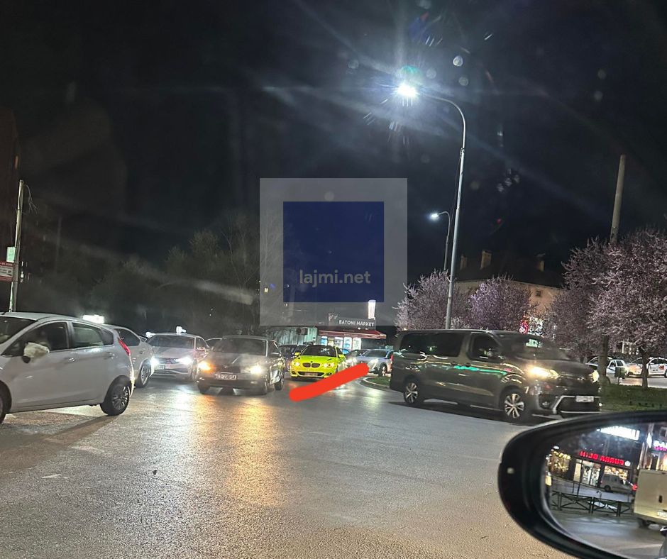 Redaksia jonë siguroi pamje të momentit kur vetura me ngjyrë të gjelbër vezulluese kaloi në rrethin që ndan rrugën “Muharrem Fejza” me atë B.