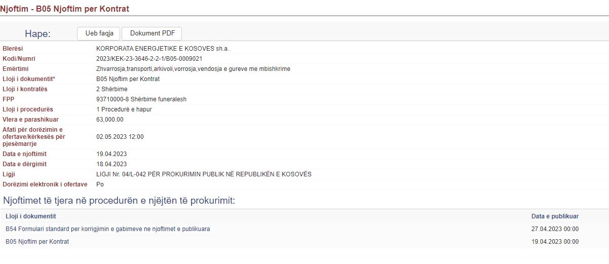 “Zhvarrosja, transporti, arkivoli, vorrosja, vendosja e gurëve me mbishkrime”. Kështu quhet tenderi i KEK-ut i cili kishte dështuar në një iniciativë.