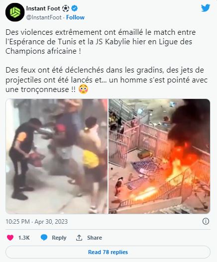 Një ngjarje mjaft e rëndë ka ndodhur në Tunizi gjatë ndeshjes së Champions League në Afrikë mes Esperance Sportive de Tunis dhe JS Kabylie.