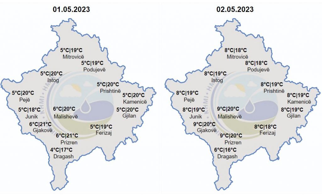 Më poshtë është parashikimi i motit për tërë javën.