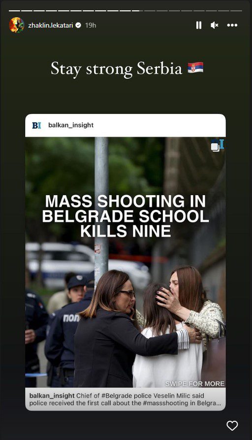 Ajo ka reaguar përmes një postimi në ‘Instagram’, ku ka shkruar: Qëndro e fortë Serbi.