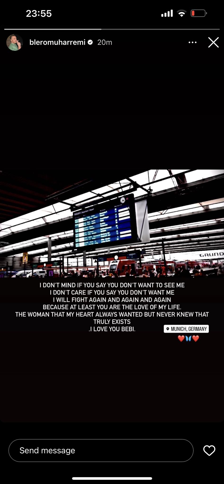 Së fundmi, ai ka postuar në InstaStory-n e tij një foto nga aeroporti i Mynihut ku shkruan: