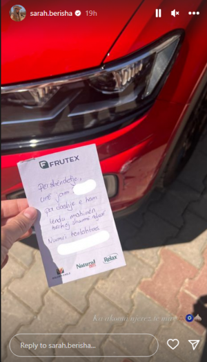 “Përshëndetje, unë jam… Pa dashje e kam lënduar makinën, kërkoj shumë ndjesë. Numri kontaktues…”, është shënimi që personi i ka lënë Sarah në makinë.