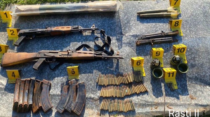 Sipas tij, në dy lokacione në komunën e Zubin Potok janë gjetur armë zjarri, granata dore dhe pajisje të tjera ushtarake.