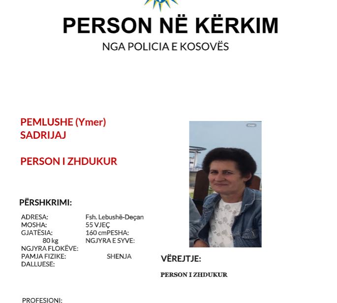 Policia kërkon që kushdo që ka informacion për vendndodhjen e këtij personi të zhdukur të lajmërojë Policinë e Kosovës apo të paraqitet në stacionin më të afërt policor.