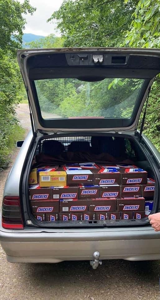 Gjatë kontrollimit të automjetit në bagazh, në ulëse të pasme dhe në ulëse tjera janë gjet (150) paketa me çokollata-Snikers.