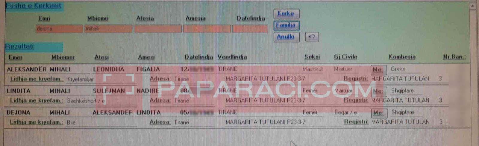 Të dhënat e Regjistrit të Gjendjes Civile në Shqipëri, të cilat i ka siguruar Paparaci, tregojnë se Aleksandër Mihali, babai i Dejona Mihalit, është i deklaruar me kombësi greke pranë autoriteteve shqiptare.