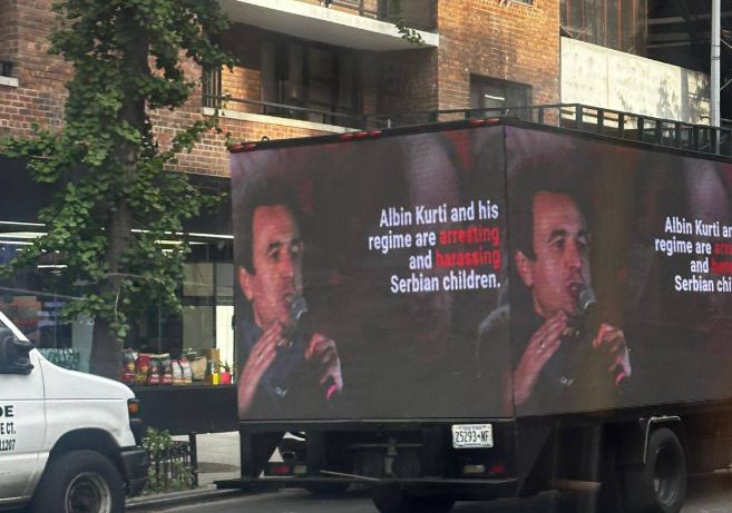 Serbia bën propagandë në Amerikë, vendos një mbishkrim skandaloz në një mjet lëvizës