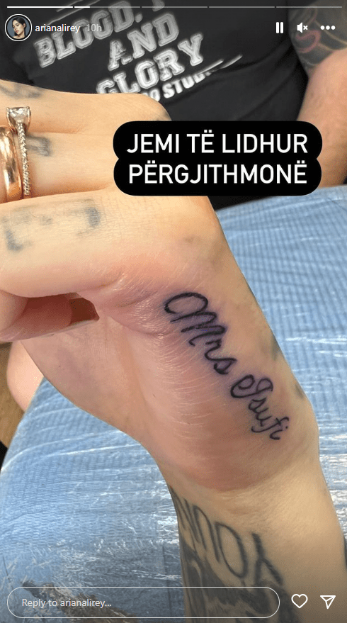 Këtë e ka konfirmuar në një formë, modelja përmes një postimi ku ka bërë edhe një tatuazh ku shkruan: “Mrs Isufi”.