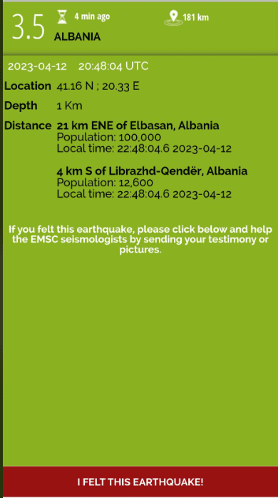 Sipas Qendrës Europiane të Sizmologjisë, tërmeti ka qenë me magnitudë 3,6 rihter, ndërsa epiqendra ka qenë 2 kilometra në jugperëndim të Librazhdit.