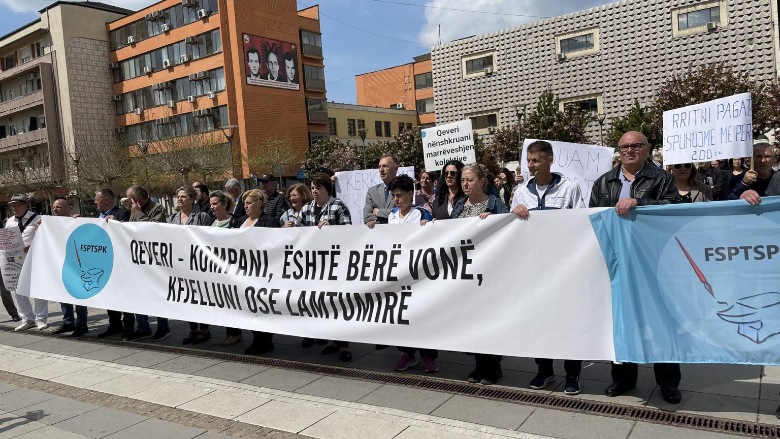Sindikata e punëtorëve të sektorit privat ka protestuar sot para Qeverisë së Kosovës.