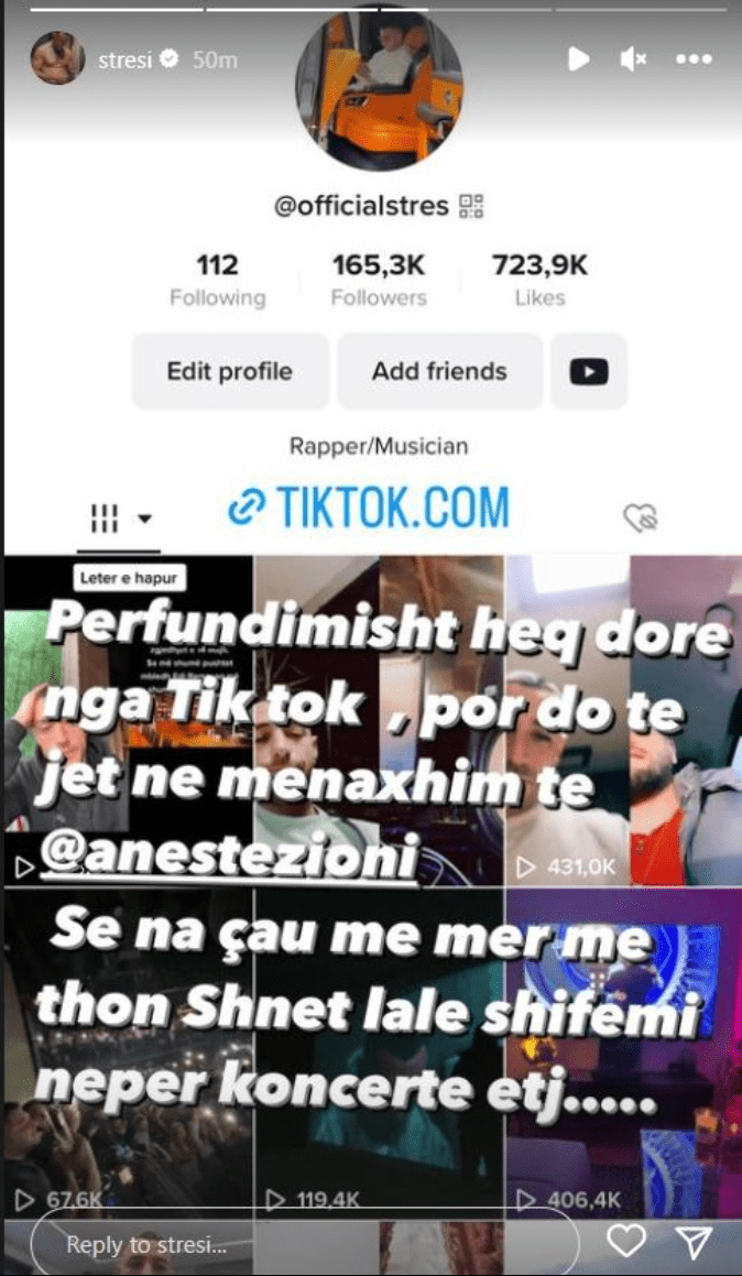Ai do të largohet në tërësi nga një prej rrjeteve sociale më të popullarizuara të momentit, TikTok.Reperi këtë e ka bërë të ditur përmes Instagramit, me shumë gjasë i lodhur nga trendet e këtij rrjeti social.