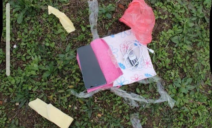Gjatë inspektimit brenda perimetrit të institucionit, SHKK njofton se është gjetur një qese e dyshimtë, brenda së cilës ishin të fshehur në mënyrë të kamufluar një Samsung, një mini-telefon dhe një kabëll mbushës.