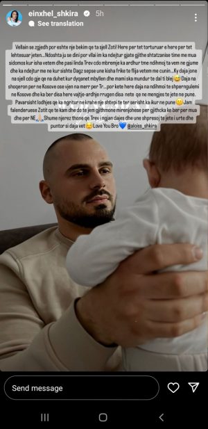 Lajmin e ka zbuluar për ndjekësit e saj vetë Einxhel në një postim në Instagram, ku ka falenderuar publikisht vëllain e saj për ndihmën e suportin gjatë shtatzënisë dhe pas lindjes së djalit të saj, Trev.