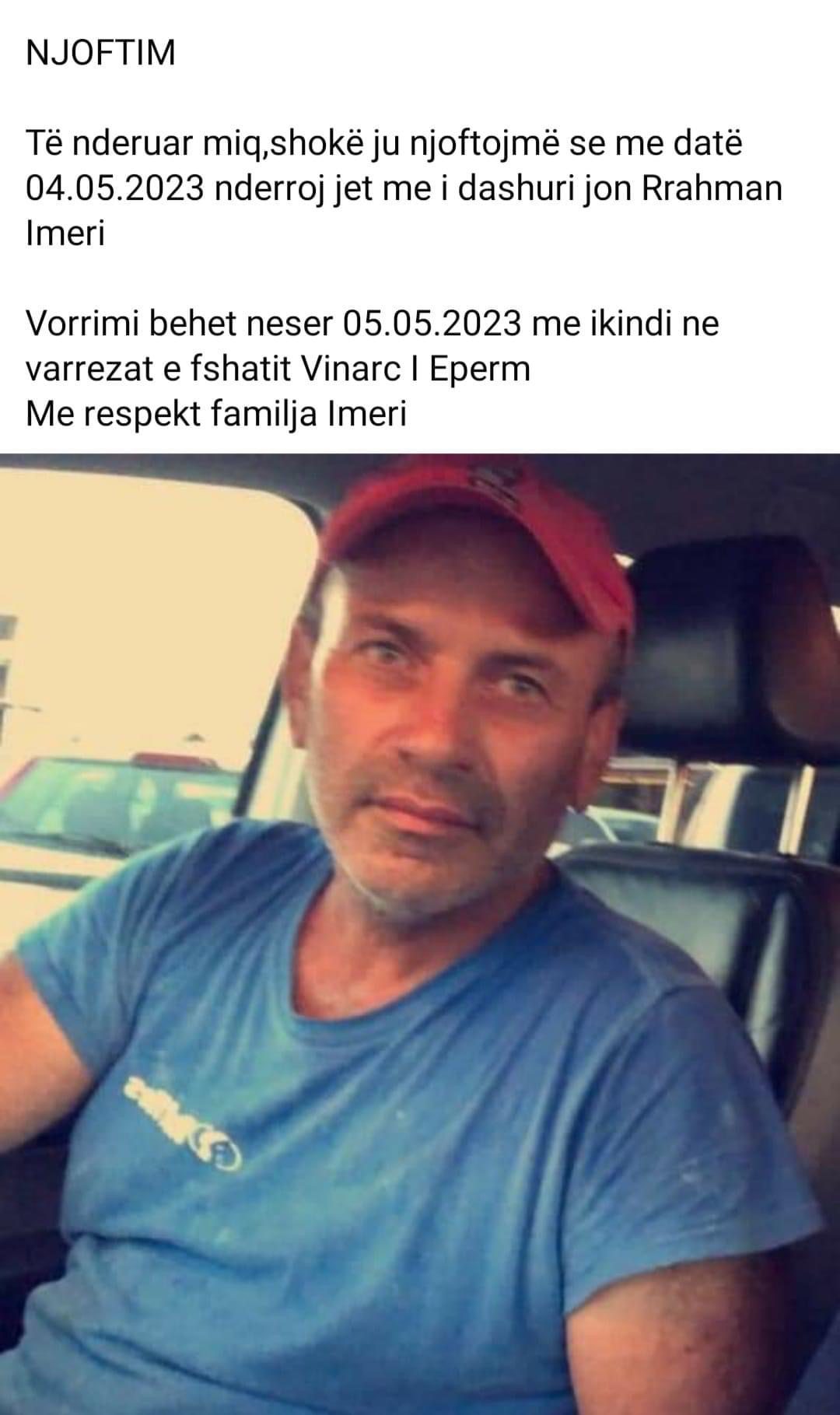 Ka vdekur në moshë mjaft të re, Rrahman Imeri nga fshati Vinarc.