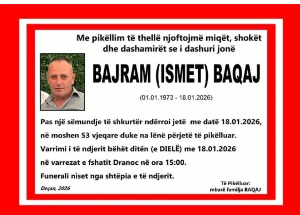 Ndërkaq varrimi i të ndjerit bëhet sot në ora 15:00 në varrezat e fshatit Dranoc të Deçanit.