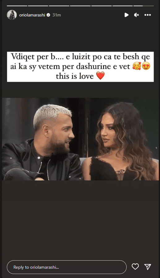 “Vdiqet për b*then e Luizit po çka të besh qe ai ka sy vetëm për dashurinë e vet, kjo është dashuri”, shkroi modelja.