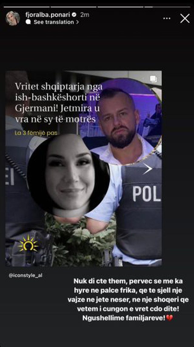 Moderatorja e njohur Fjoralba Ponari ka reaguar pas ngjarjes së trishtë që ndodhi në Gjermani, ku u vra 28-vjeçarja shqiptare Jetmira Beka nga ish-bashkëshorti i saj.