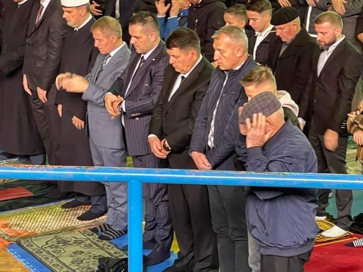 Në mesin e atyre që e kanë falur namazin shihet të jenë edhe kryetari i komunës së Vushtrrisë, Ferit Idrizi dhe nënkryetari i komunës, Shpetim Zhegrova.