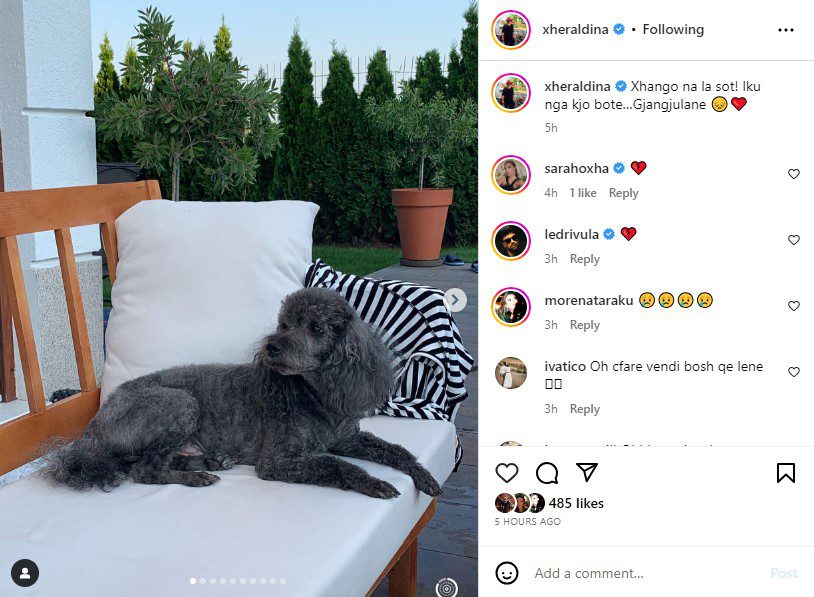 Prezantuesja e mirënjohur Xheraldina Vula përmes rrjeteve sociale ka bërë të ditur se sot ka ngordhur qeni i tyre që mund të themi se ishte anëtar i vërtetë i familjes.