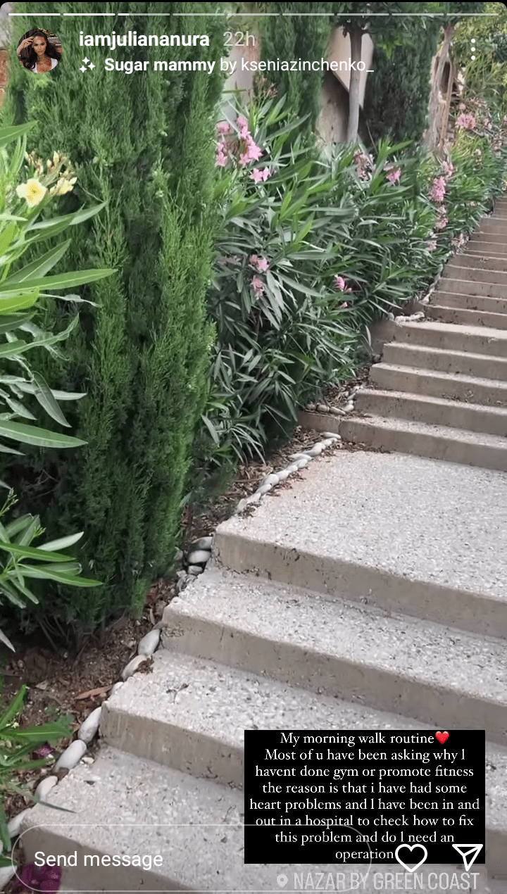 “Rutina e ecjes së mëngjesit. Shumë prej jush më keni pyetur përse s’kam bërë gym apo pse se kam promovuar fitnessin. Arsyeja është sepse kam pasur disa probleme me zemrën dhe kam qenë në spital për të parë se si të rregullohet ky problem dhe nëse më duhet një operim”, është shprehur ajo.